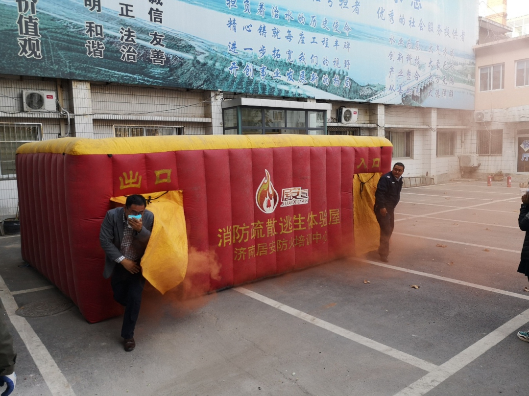 本次培訓由居安防火培訓中心裴主任授課,結(jié)合近期重大火災(zāi)案例、消防安全基本常識、常見火災(zāi)起因、逃生的要點進行了詳細講解,對常見消防設(shè)備的配置及正確使用方法進行了演示,還針對日常生活中常出現(xiàn)的電器起火、廚房火災(zāi)、樓道起火等情況進行了特別講解,使參培人員掌握了常見消防器材的基本操作和使用。在應(yīng)急演練中,借助消防疏散逃生體驗屋模擬火災(zāi)現(xiàn)場的真實狀況,讓參培人員切身體驗火災(zāi)逃生過程。隨后,裴主任演示了滅火器的正確使用方法、步驟、和滅火姿勢,安排參培人員現(xiàn)場實操滅火。整個逃生演練及滅火實操按預(yù)練方案有序進行,達到了預(yù)期效果。