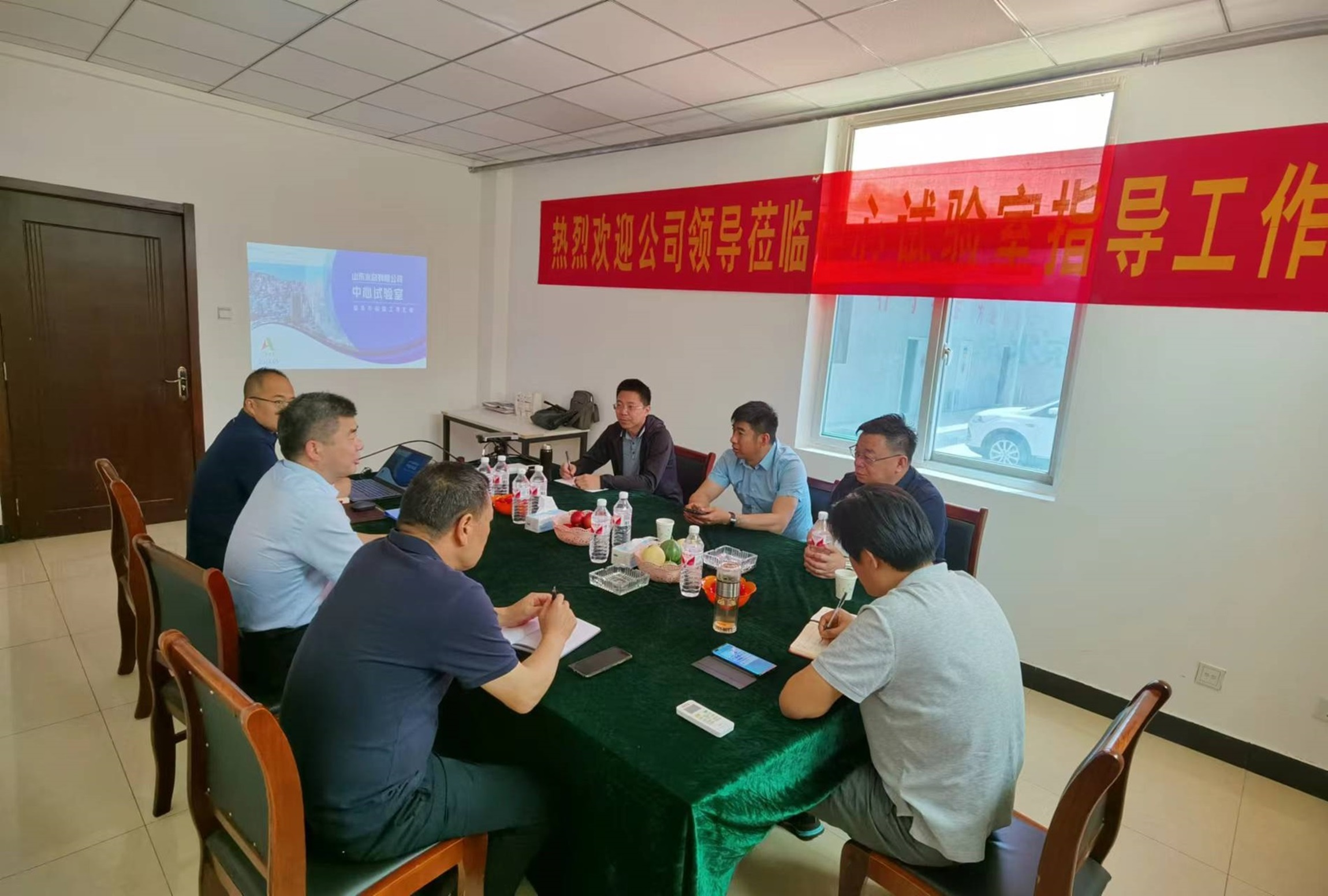 5月16日,公司黨委委員、副總經(jīng)理付海華與山東省水利工程局有限公司副總經(jīng)理劉要軍等一行到中心試驗室開展調(diào)研指導、洽談交流工作。