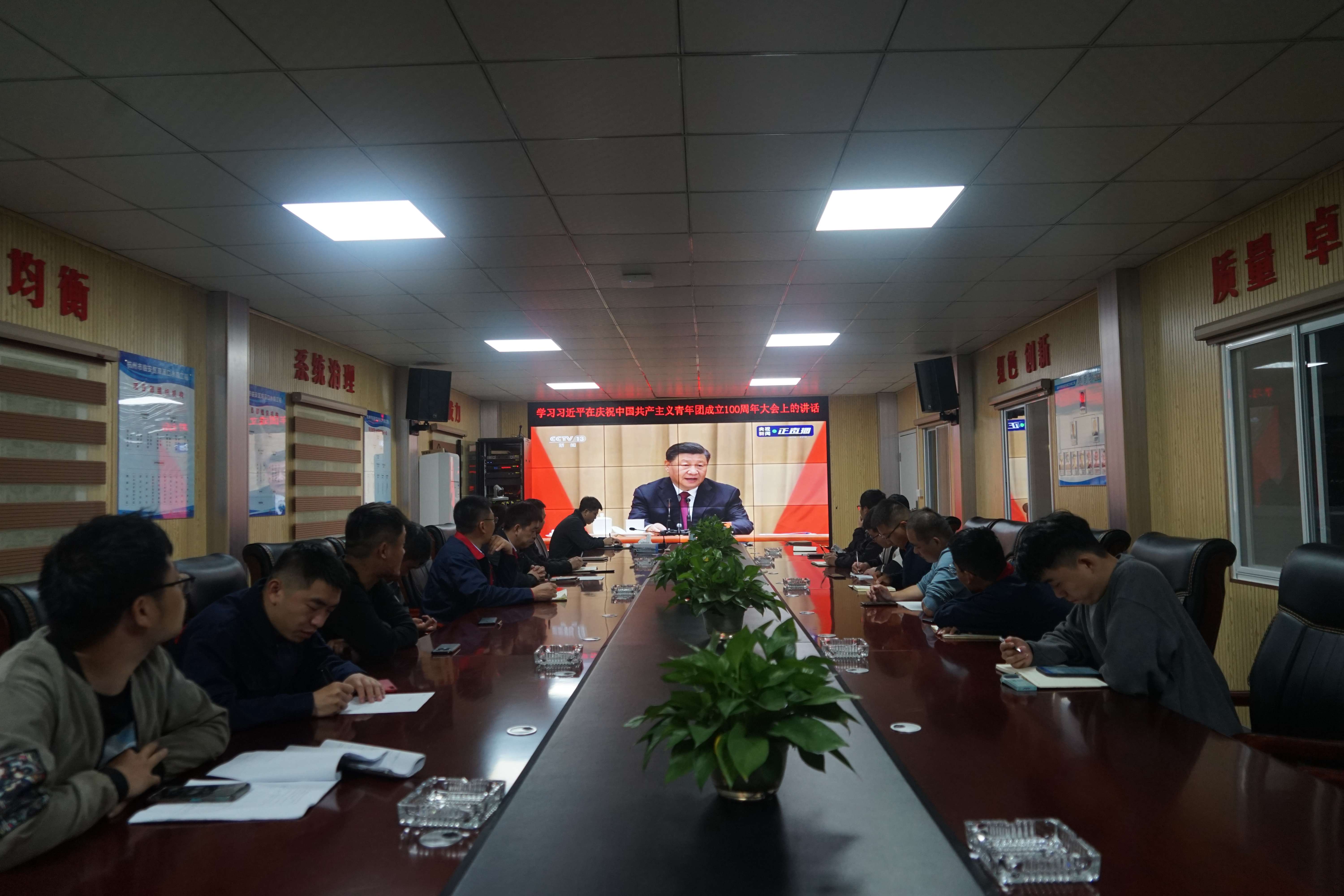 5月10日,杭州魯潤公司與第六分公司共同組織雙溪口水庫工程團(tuán)員青年,觀看中國共產(chǎn)主義青年團(tuán)成立100周年慶祝大會(huì)實(shí)況。慶祝大會(huì)上,習(xí)近平總書記發(fā)表了重要講話。