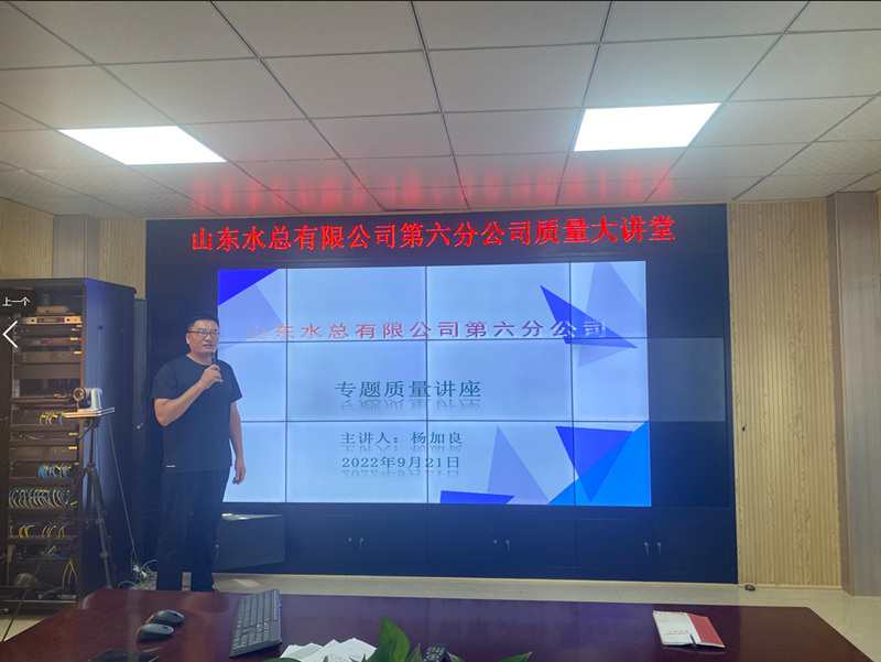楊加良作為本次大講堂主講人,宣貫了《山東高速路橋集團(tuán)股份有限公司質(zhì)量監(jiān)督管理辦法》《山東水總有限公司質(zhì)量管理辦法》,結(jié)合雙溪口項(xiàng)目深度講解模板的制作與安裝,鋼筋加工、接頭與安裝等具體施工方法。對(duì)抓好質(zhì)量責(zé)任落實(shí)提出三點(diǎn)要求:一是工程施工質(zhì)量問題要從源頭、過程、結(jié)果三方面全方位控制,保證施工工程質(zhì)量可控。二是要合理部署施工節(jié)奏,將質(zhì)量主體責(zé)任落實(shí)到每一個(gè)施工環(huán)節(jié),做到質(zhì)量工作穩(wěn)步前進(jìn)。三是要將質(zhì)量月的要求延伸到日常施工管理中去,實(shí)現(xiàn)質(zhì)量管理見成績出實(shí)效的目標(biāo)。