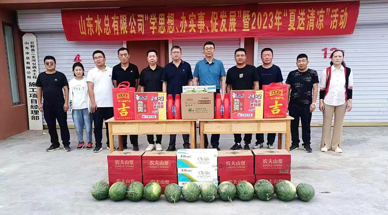 為持續(xù)推動(dòng)學(xué)習(xí)貫徹習(xí)近平新時(shí)代中國(guó)特色社會(huì)主義思想主題教育走深走實(shí),切實(shí)維護(hù)廣大職工的勞動(dòng)健康權(quán)益,常態(tài)化開(kāi)展“我為群眾辦實(shí)事”實(shí)踐活動(dòng),7月6日,公司總會(huì)計(jì)師楊利軍到二局有限公司巨野縣二支河引調(diào)水工程開(kāi)展“學(xué)思想、辦實(shí)事、促發(fā)展”暨2023年“夏送清涼”活動(dòng)。二局有限公司黨委書(shū)記、總經(jīng)理王傳波,副總經(jīng)理劉波、李灝,總會(huì)計(jì)師王佃志等陪同參加。