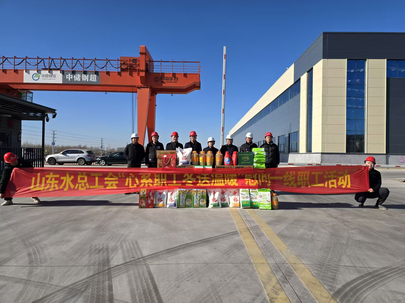 1月8日,公司黨委委員、副總經(jīng)理袁英杰一行到山東小清河倉儲物流有限公司倉儲物流項目開展“心系職工,冬送溫暖”活動。第五分公司總經(jīng)理蔡國森陪同。